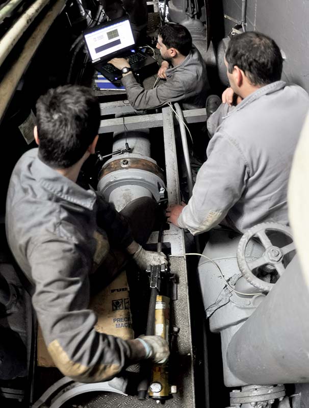 Las pruebas de alineación de ejes de propulsión por precarga (jackload test), implican un calibrado de alta precisión de todos los puntos de apoyo que existen entre la bocina de una hélice y su conexión con la reductora del sistema de propulsión.