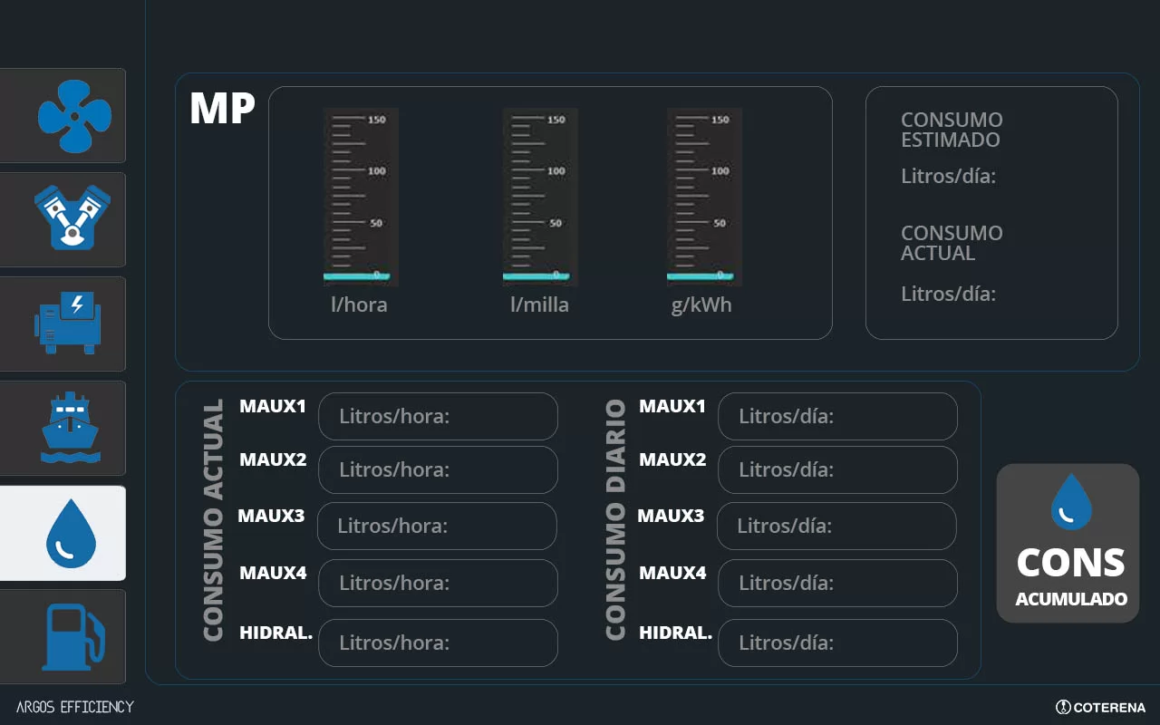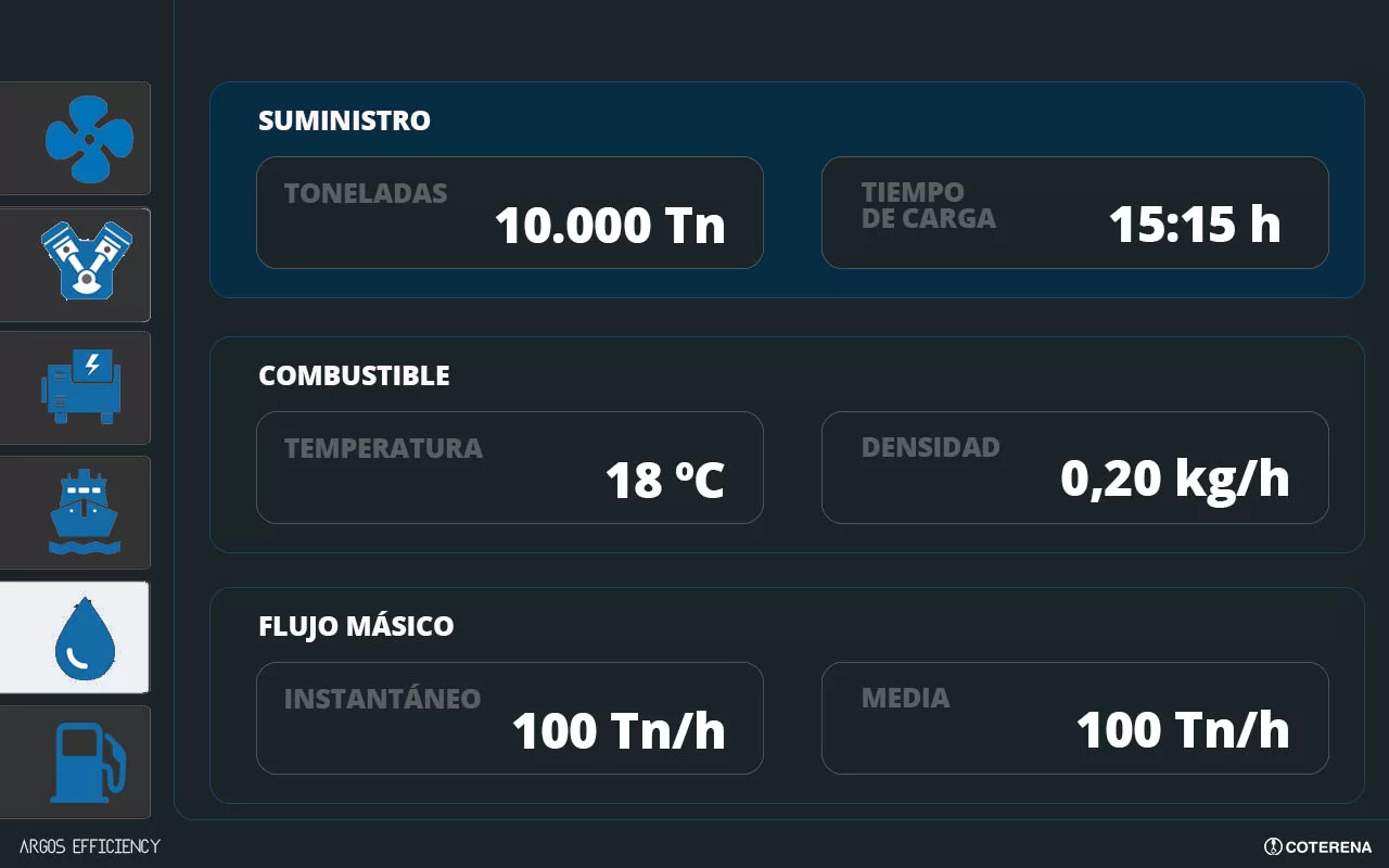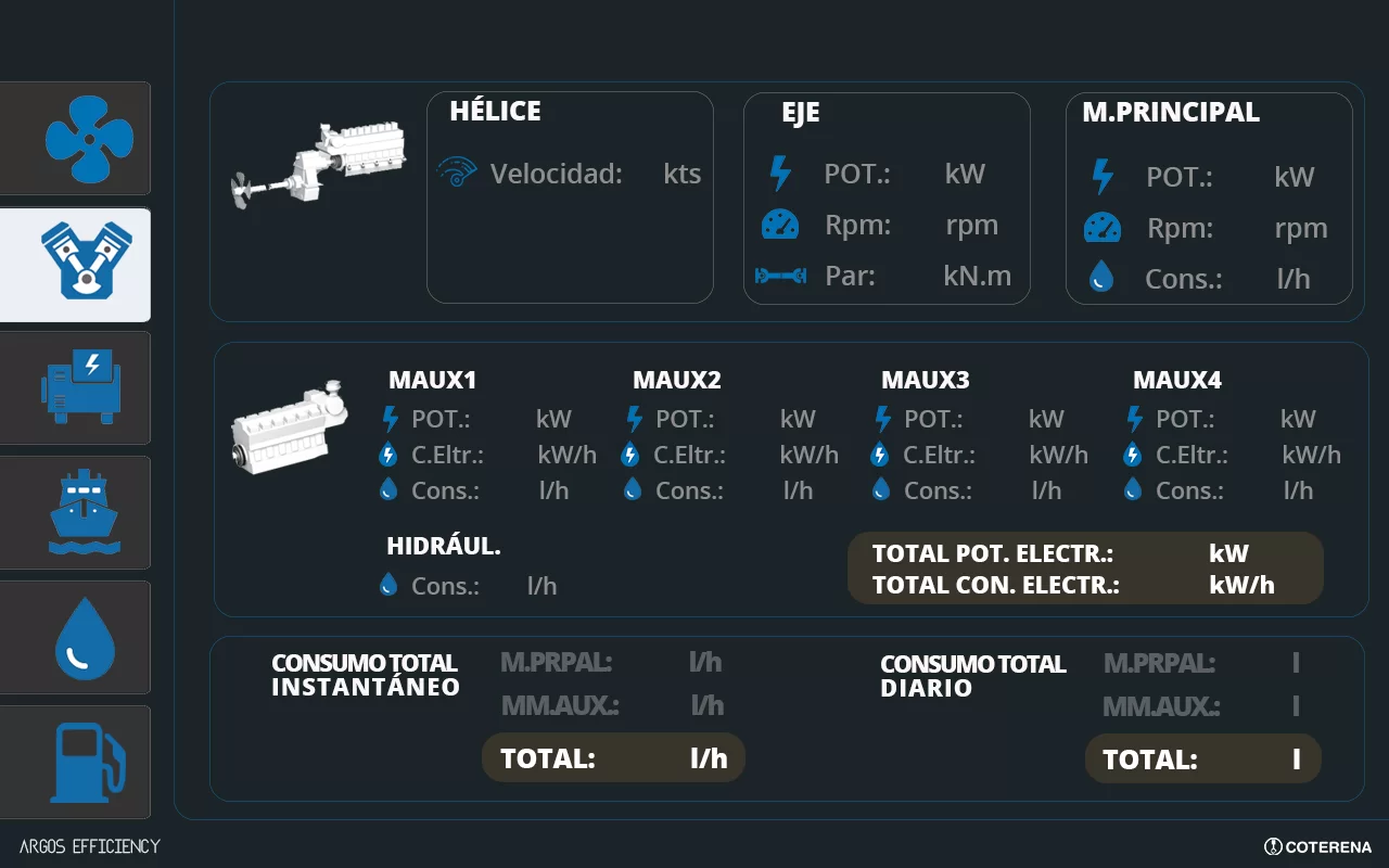- Conocimiento en tiempo real de consumo efectivo de combustible del sistema propulsor y motores auxiliares abordo.