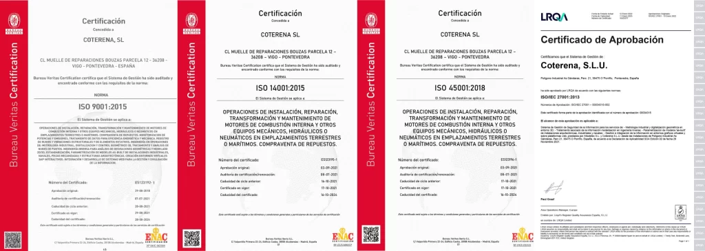 COTERENA dispone de un procedimiento de medición para test de confirmación de emisiones a bordo certificado por la Agencia de Clasificación RINA, que cumple con el capítulo 6.3 del Código Técnico de los NOx (MARPOL), válido para medidas de comprobación a bordo después de transformaciones o modificaciones de potencia, certificado  de emisiones…