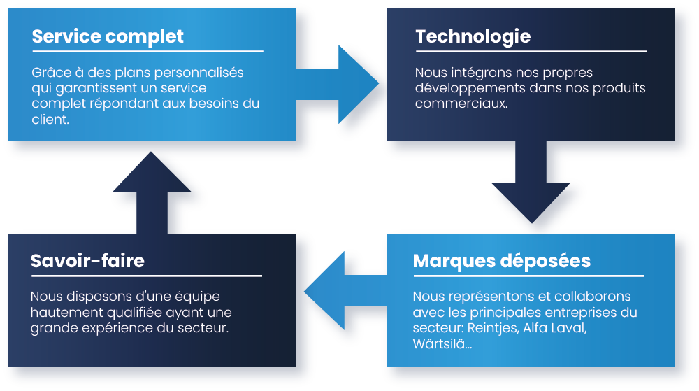 Notre système de qualité est intégré à notre proposition de valeur, fondée sur un modèle de croissance durable et soutenue reposant sur quatre piliers : Savoir-faire, Service intégral, Technologie (R&D) et Représentation de marques de premier plan.