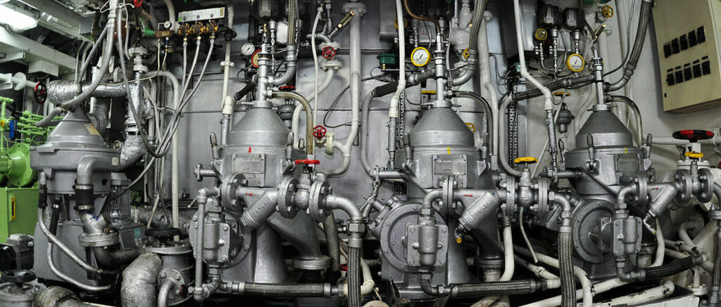 Actuamos sobre todos los elementos periféricos de la Sala de Maquinas asociados a los motores térmicos tales como separadoras centrífugas, compresores de aire, intercambiadores de calor, radiadores, todo tipo de bombas, así como los sistemas de tratamiento de combustibles y sus equipos de control.
